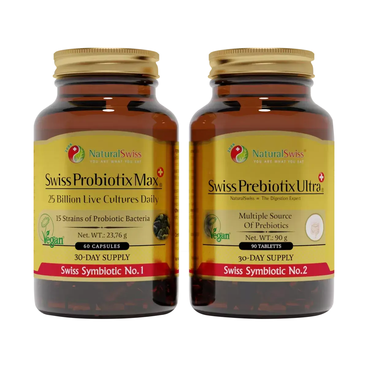 A NaturalSwiss® Szimbiotikum egy szakszerűen válogatott baktériumtörzseket tartalmazó pro- és prebiotikus étrend-kiegészítő. Két készítményt, a 15 féle jótékony baktériumfajból álló Swiss Probiotix Max és a jótékony baktériumok táplálékában, a frukto-oligoszacharidokban bővelkedő Swiss Prebiotix Ultra termékeket foglalja magába. A késleltetett felszívódású, bélben feloldódó kapszula és a tabletta fogyasztható vegetáriánus étrendet követő személyek számára is. Nem tartalmaz továbbá adalékanyagot, búzát, koffeint, szóját, kukoricát, cukrot, tojást, tejet, tartósítószereket és színezéket.